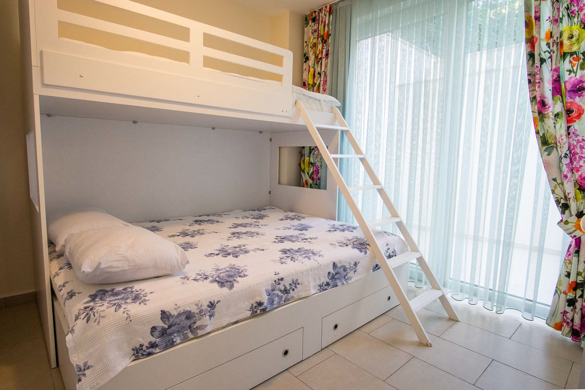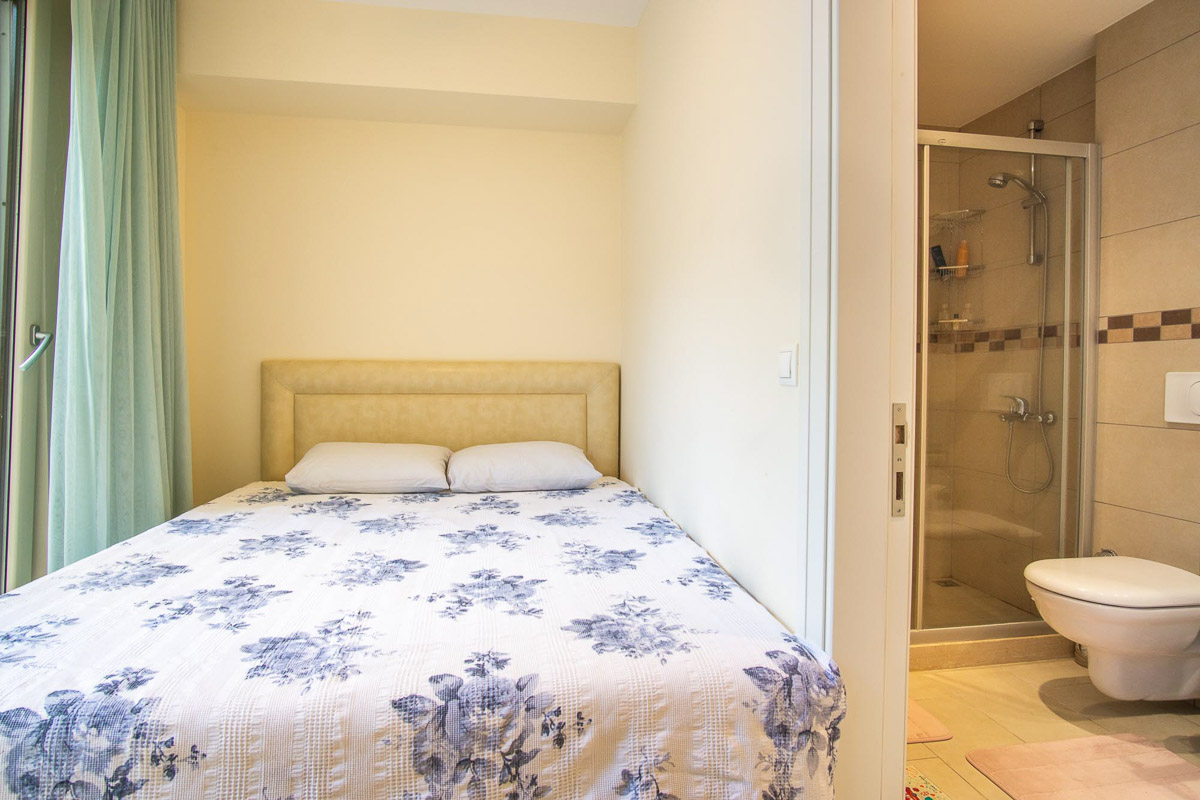 Modern eşyalarla dekore edilmiş, günlük yaşam için gerekli tüm donanıma sahip olan bu eşyalı kiralık daire, iç ve dış mekan kullanımını dengeli biçimde bir araya getiriyor.