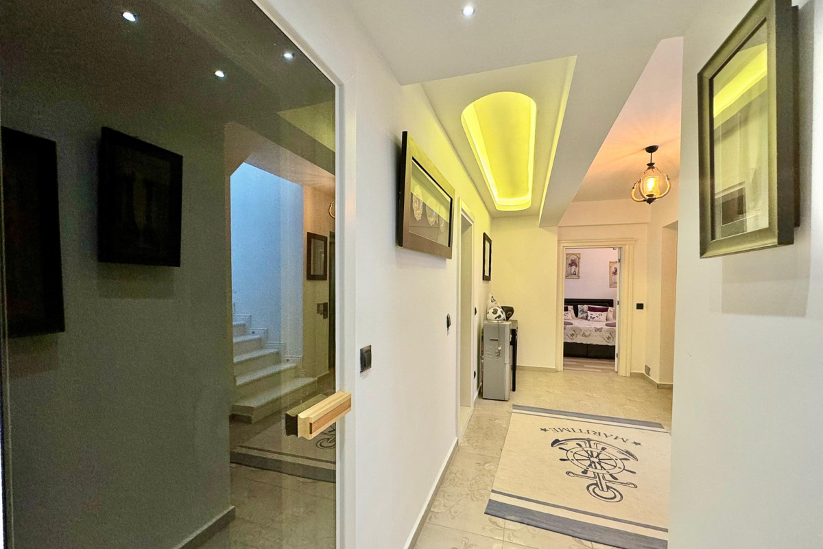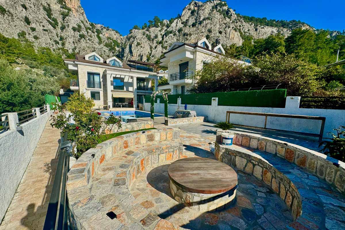 Bahçede ağaçların arasında konumlanan ateş çukuru, akşam saatlerinde manzaraya karşı keyifli vakit geçirmek için farklı bir alan sunuyor. İç mekânda yer alan şömine, sauna ve hamam detaylarıyla birlikte ev yılın her döneminde konforlu bir kullanım sağlıyor. Göcek’te doğayla iç içe, müstakil havuzlu ve lüks donanımlı bir yaşam arayanlar için öne çıkan seçeneklerden biri.