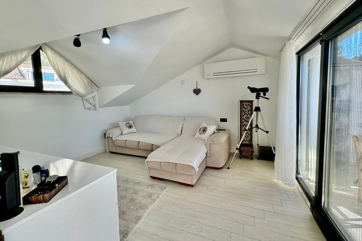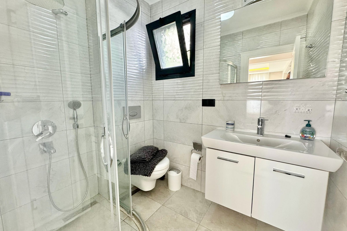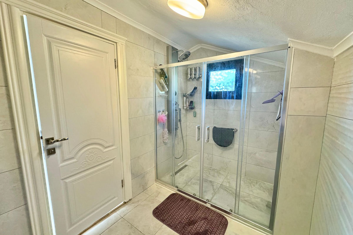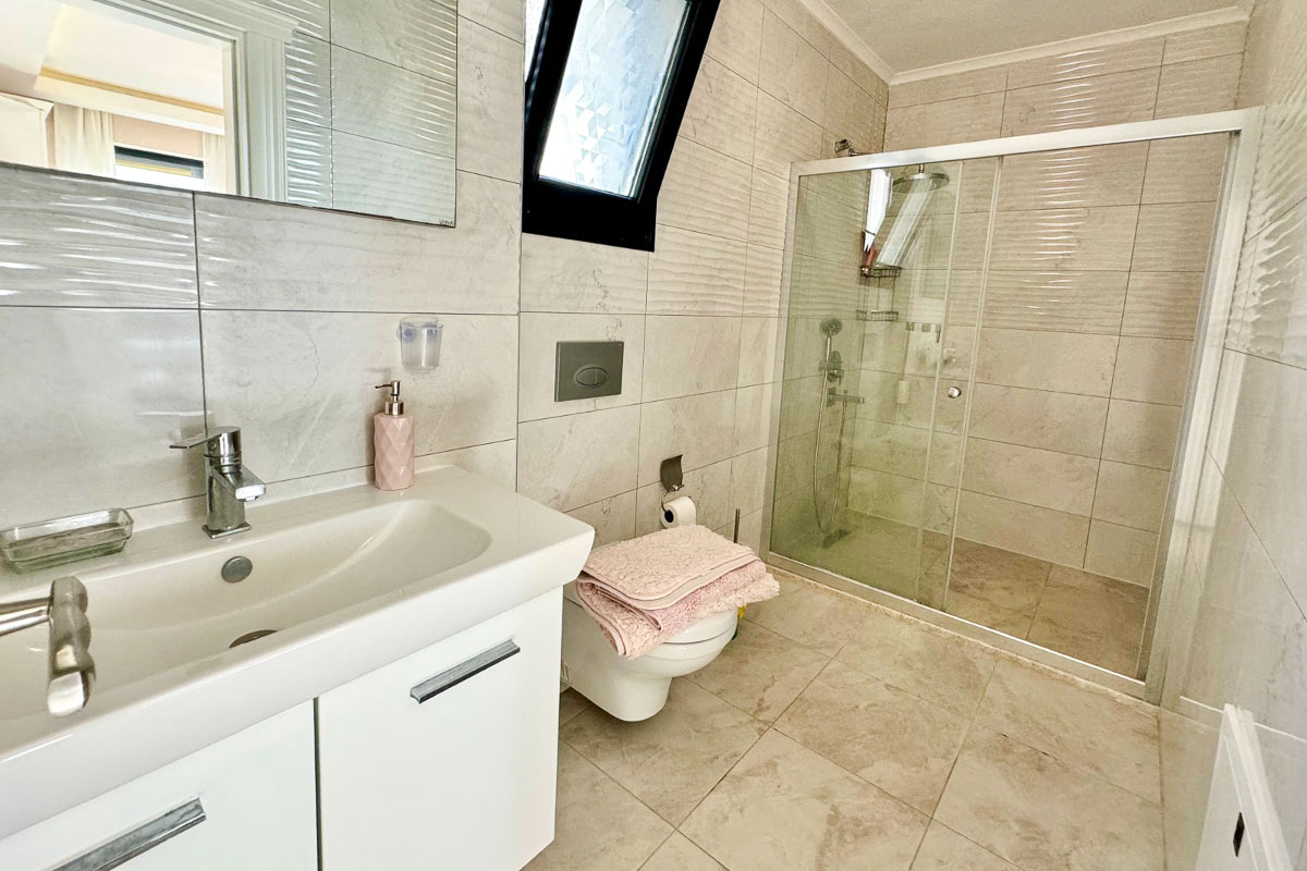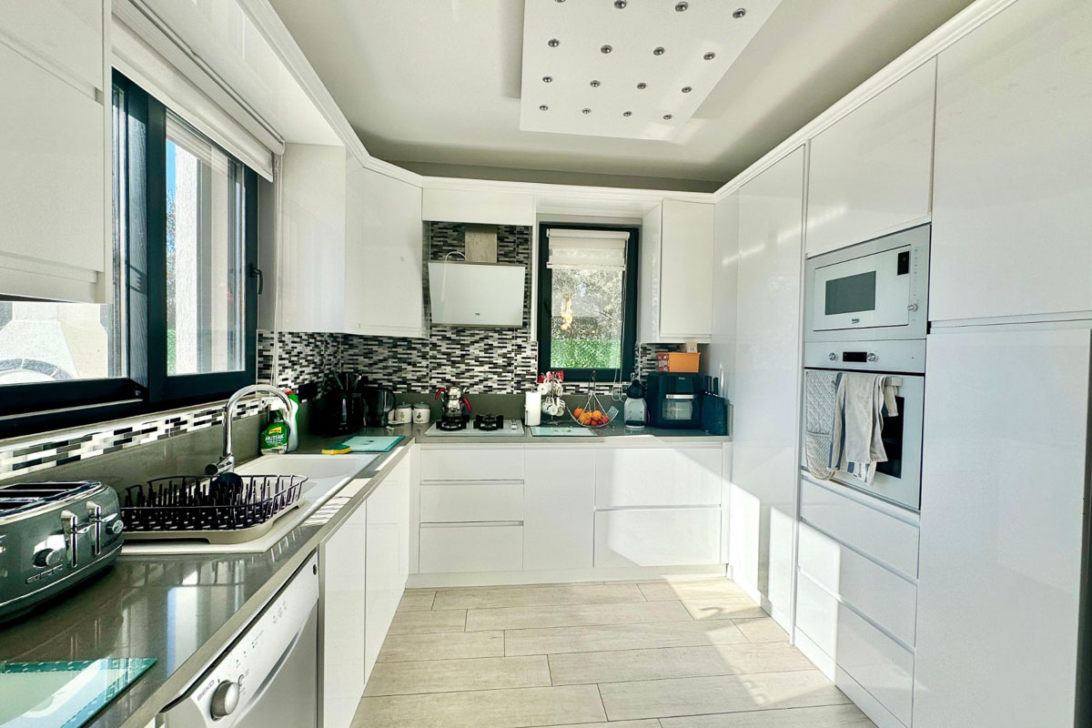 220 m² kullanım alanına sahip olan villa, beyaz eşyalar dahil tam donanımlı ve eşyalı şekilde teslim ediliyor. Evde asansör sistemi yer alıyor ve tüm katlara ulaşım oldukça pratik. Her odada klima bulunuyor, yerden ısıtma ve soğutma sistemi yılın her döneminde dengeli bir konfor sağlıyor. Salonun merkezinde yer alan şömine, serin akşamlarda sıcak bir atmosfer oluşturuyor. Kuvars tezgahlı modern mutfak, elektrikli panjurlar, güvenlik kameraları ve güvenli giriş kapısı donanımı tamamlıyor. İki araçlık özel otopark alanı mevcut.