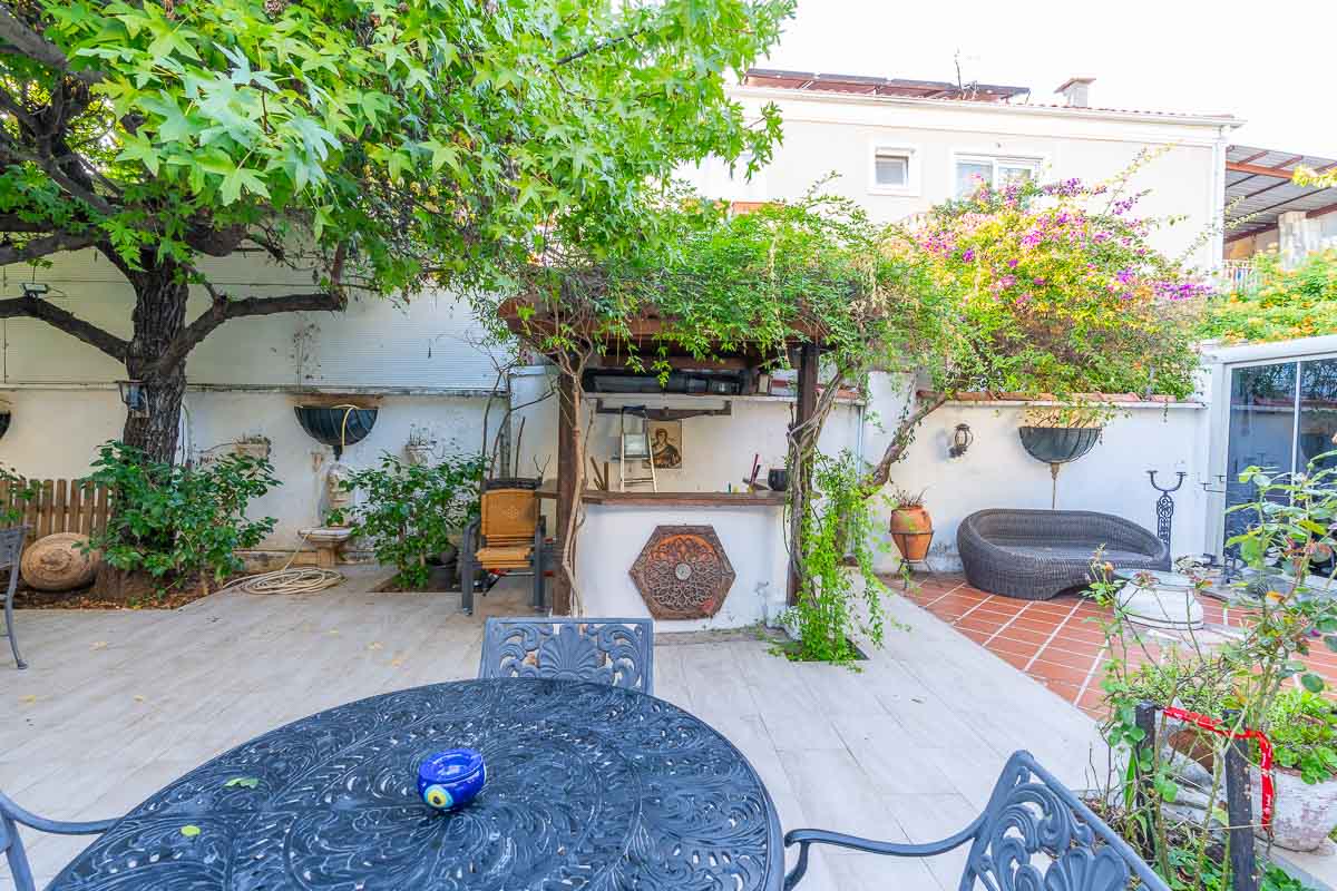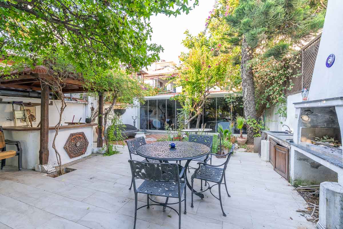 Yaklaşık 120 m² camla kaplı kapalı alanı, mutfak altyapısına uygun bölümü ve 145 m² yemyeşil bahçesiyle, hem iç hem dış mekan konseptinde hizmet vermek için ideal. Bahçede küçük bir bar, BBQ alanı ve keyifli oturma düzeni mevcut.