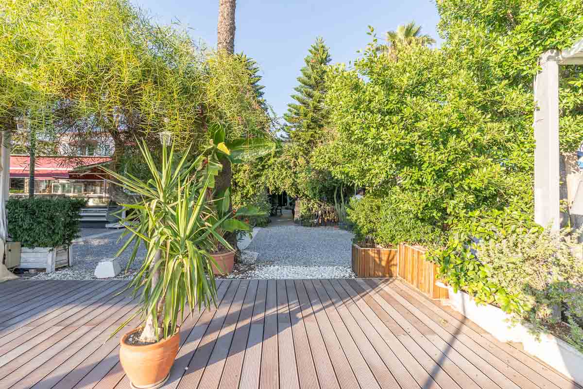 Bu özel bahçe, önünden geçen herkesin dikkatini çeken, adeta “gizli bir cennet” görünümünde. Hem sahil yoluna hem denize bakan konumuyla, restoran, fine dining konsepti, cafe veya cocktail bar işletmeleri için mükemmel bir seçenek.