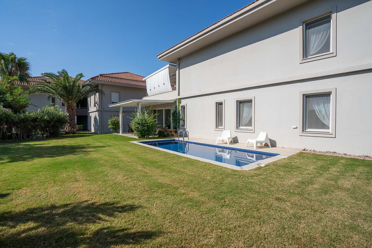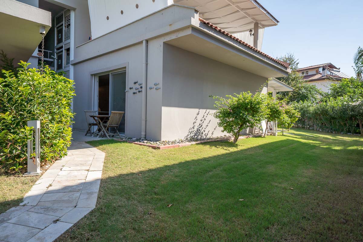Bu özel bahçe katı daire, sitedeki en iyi konumda, köşe pozisyonda yer alıyor ve kendine ait özel havuza sahip.