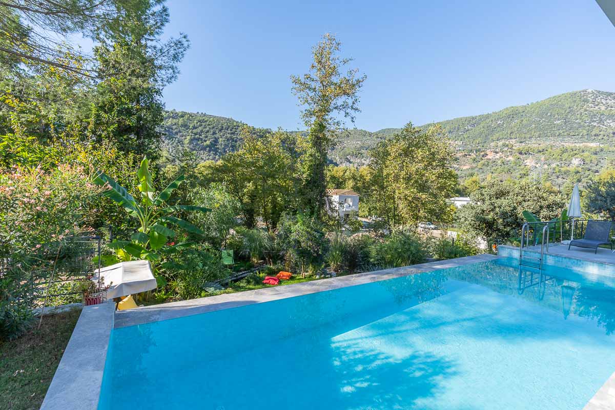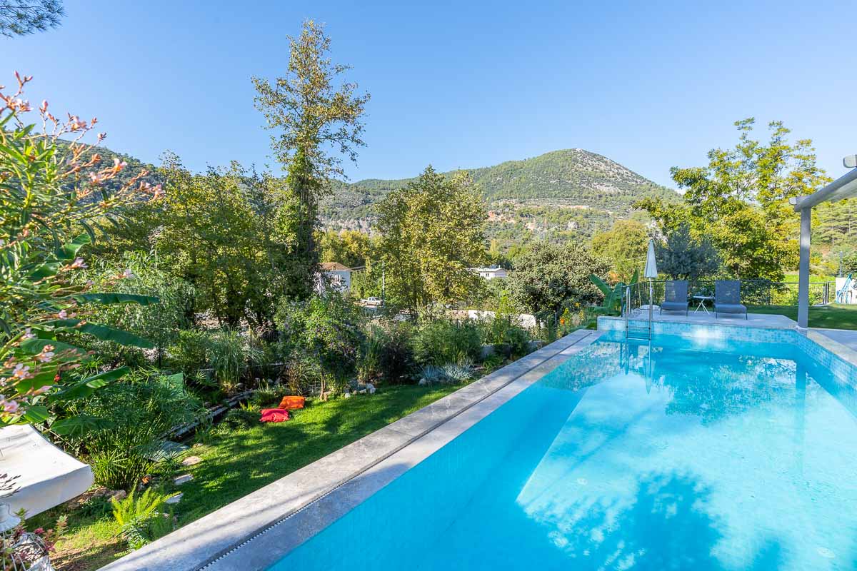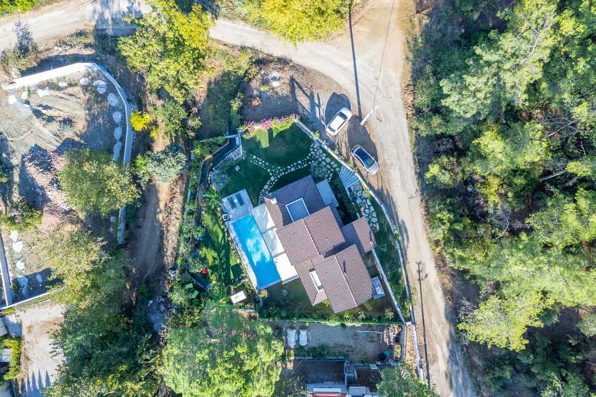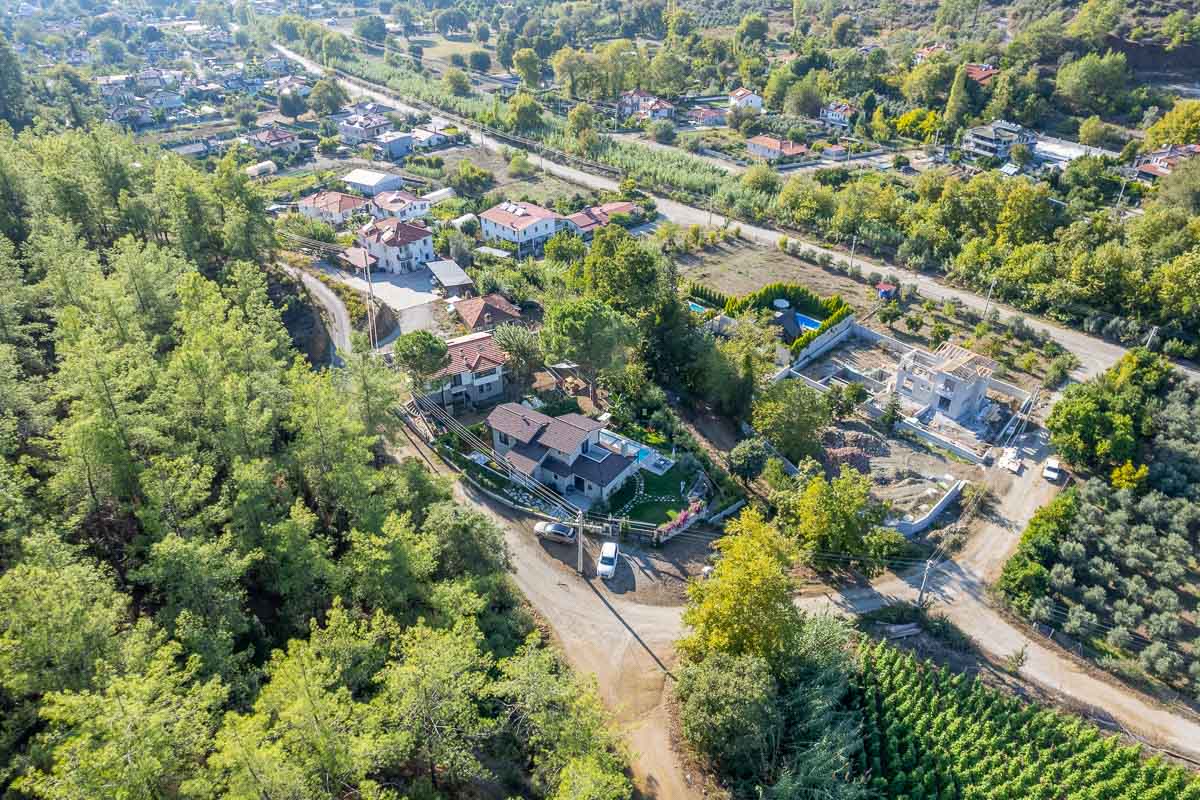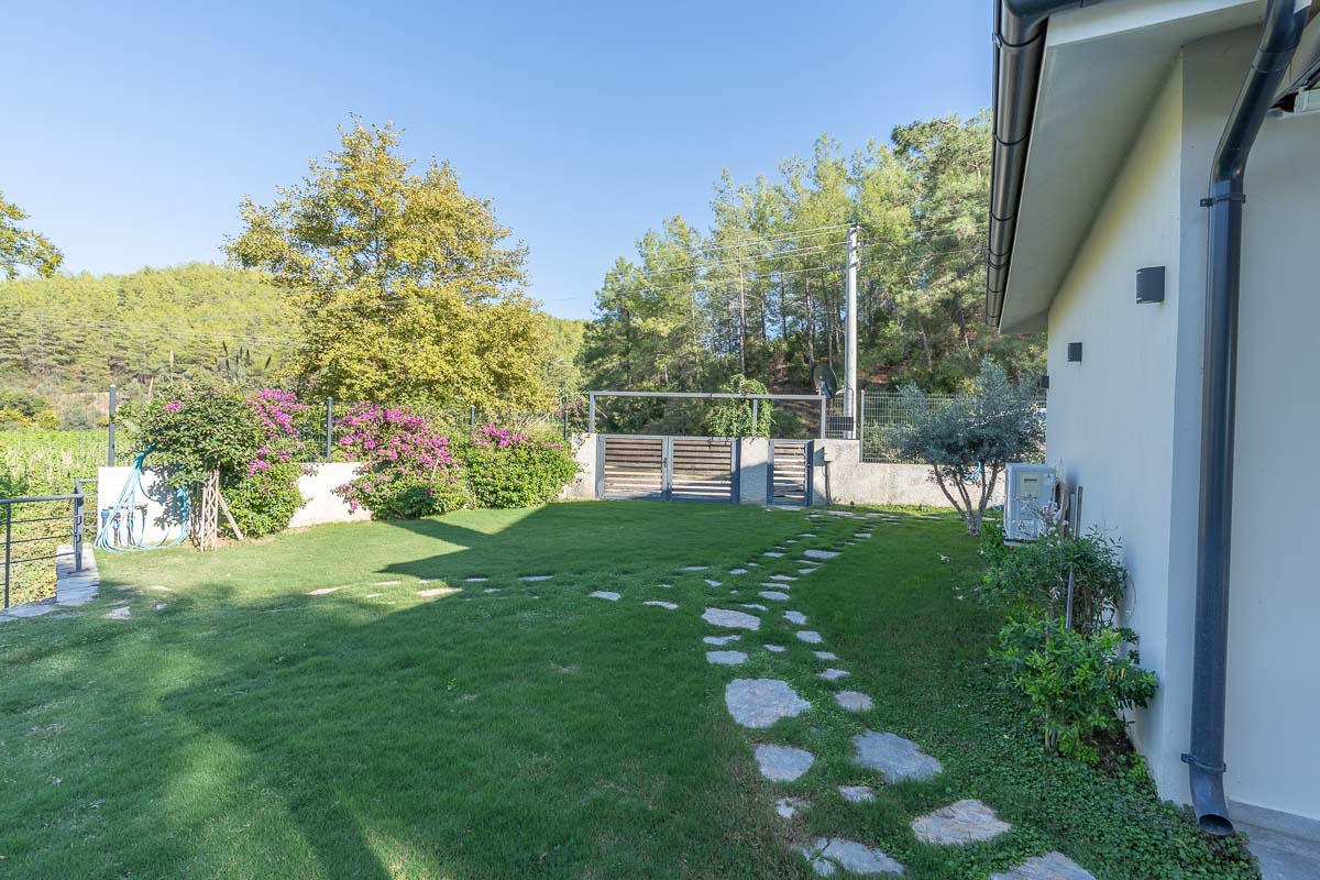 İnlice’de, yemyeşil bir vadi içerisinde konumlanan bu müstakil villa, doğa ile iç içe ve sakin bir yaşam arayanlar için dengeli bir seçenek oluşturuyor. Yaklaşık 700 m² arsa üzerine inşa edilmiş olan mülk, geniş bahçesi, özel havuzu ve çevresini saran çam ormanları ile huzurlu bir atmosfer sunuyor.