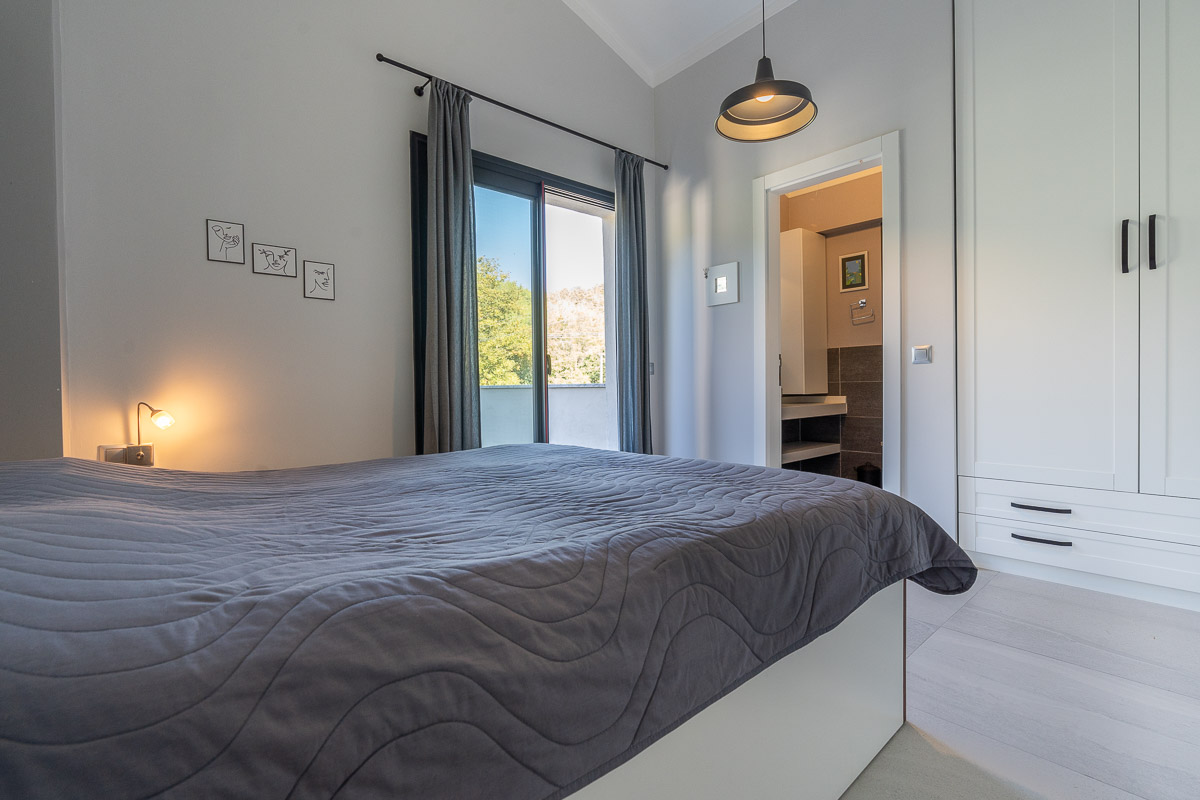Üst katta ise ebeveyn banyolu ve balkonlu iki yatak odası yer alıyor. Bu kat, özellikle vadi manzarasına yönelen balkonları sayesinde doğayla güçlü bir bağ kuran ferah bir yaşam alanı sunuyor.