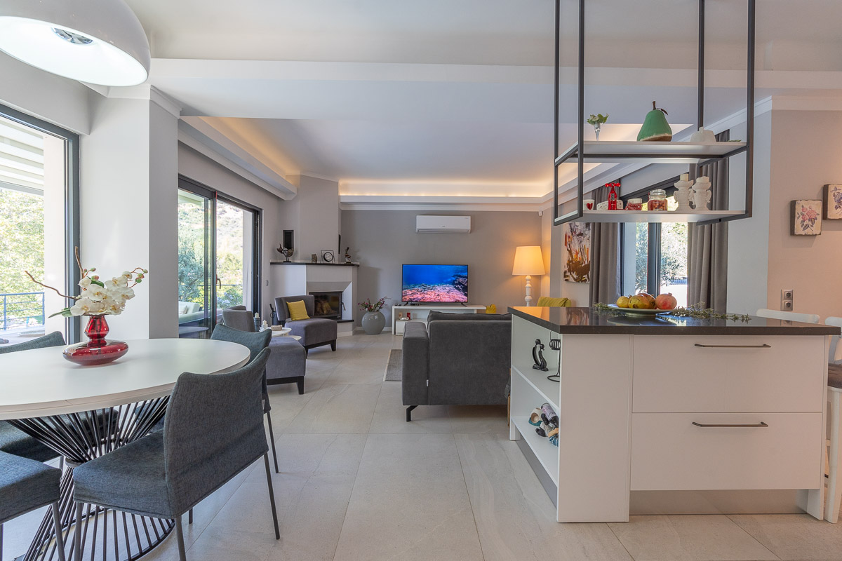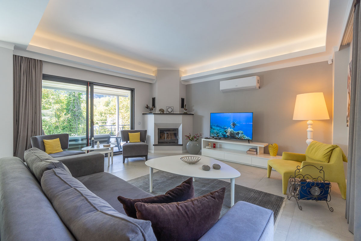 Ev, teknik donanım açısından da oldukça kullanışlı bir altyapıya sahip. Yerden ısıtma sistemi, şömine, klima sistemi ve ısıtmalı yüzme havuzu gibi özellikler sayesinde mülk yılın her döneminde rahat bir yaşam sunabilecek nitelikte. Salon bölümünde yer alan şömine, özellikle kış aylarında sıcak ve keyifli bir atmosfer oluşturuyor.