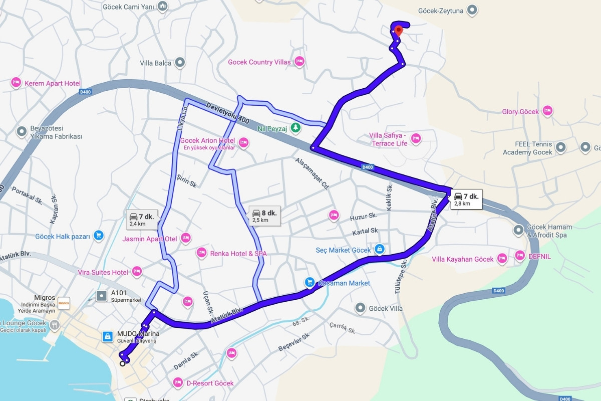 Göcek Çarşı ve Marina: 7–8 dakika (araçla)